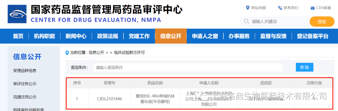 2022年01月26日,中国国家药品监督管理局药品审评中心(CDE)公示,上海九州酷游官网生物医药技术有限公司一款针对中重度哮喘治疗的核心药物LQ036——重组抗IL-4Rα单域抗体雾化液(毕赤酵母)的临床试验申请(IND)正式取得批准(通知书编号:2022LP00124),从IND受理到获批仅用2个月,此间无发补项。
